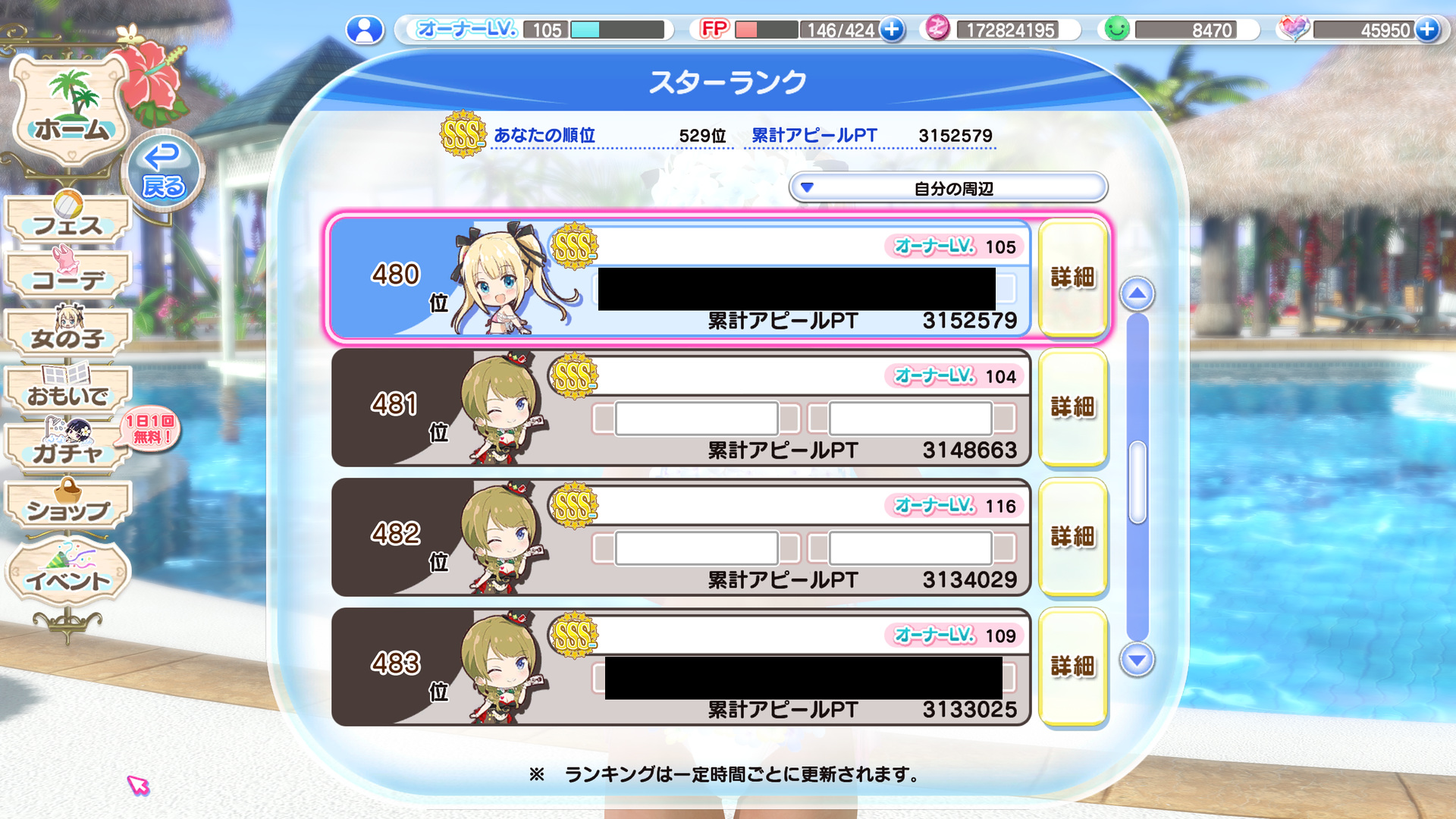 進み具合から想像するに、おそらくは先日述べた拳闘クラブに手を出す前へのやり直しが不可能な状態に陥って投げ出したプレイヤーが結構居るような気がする。