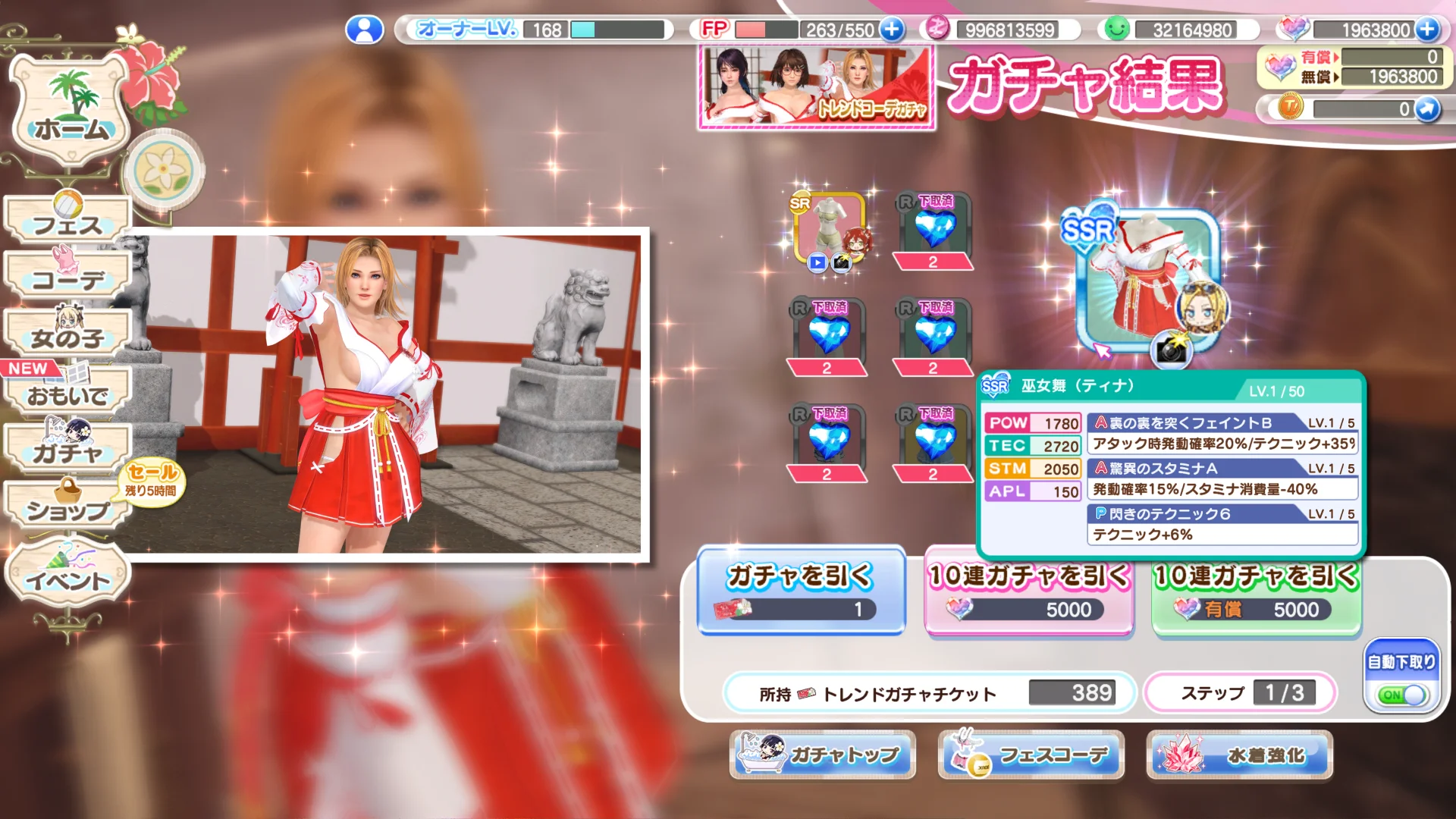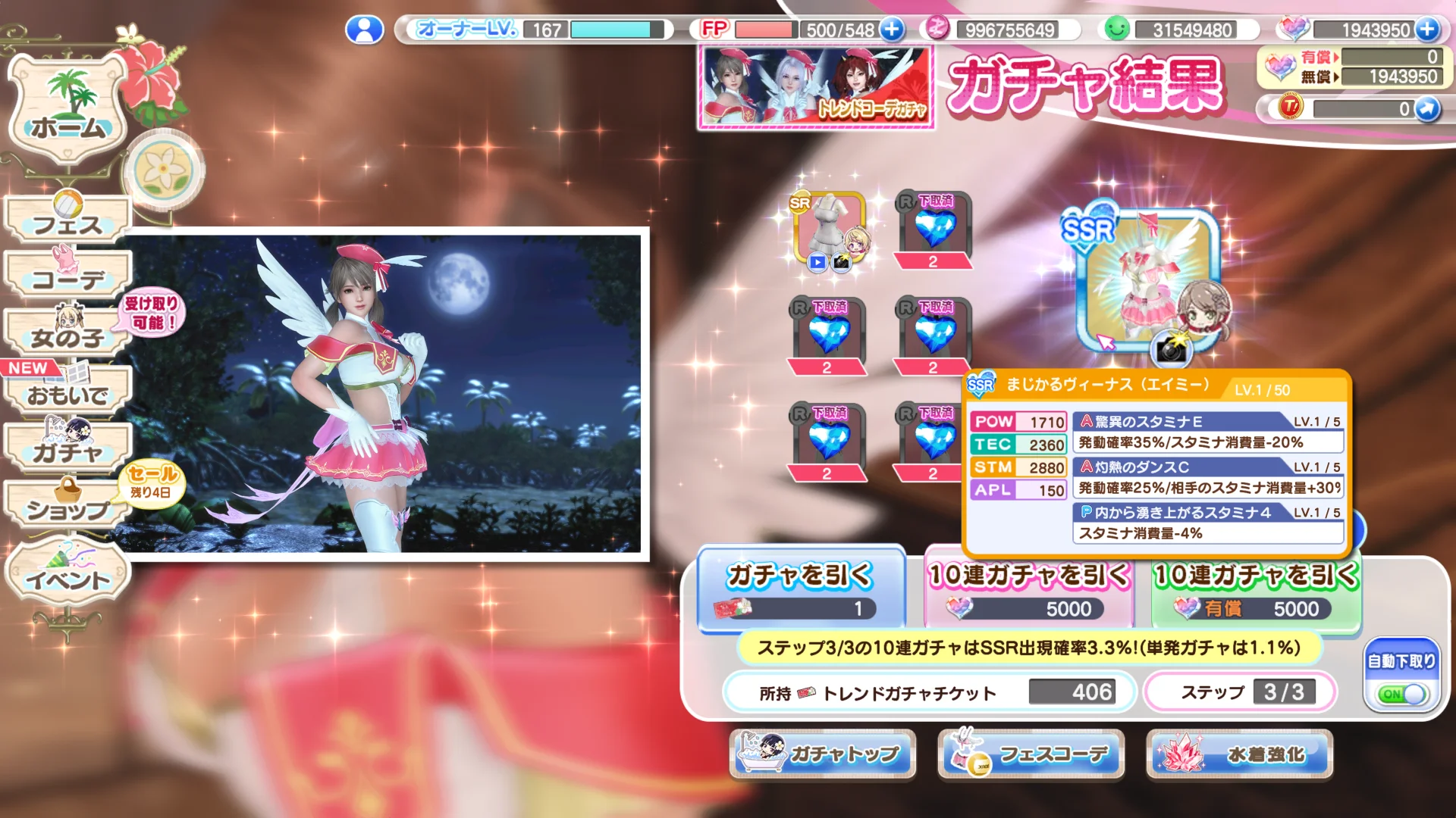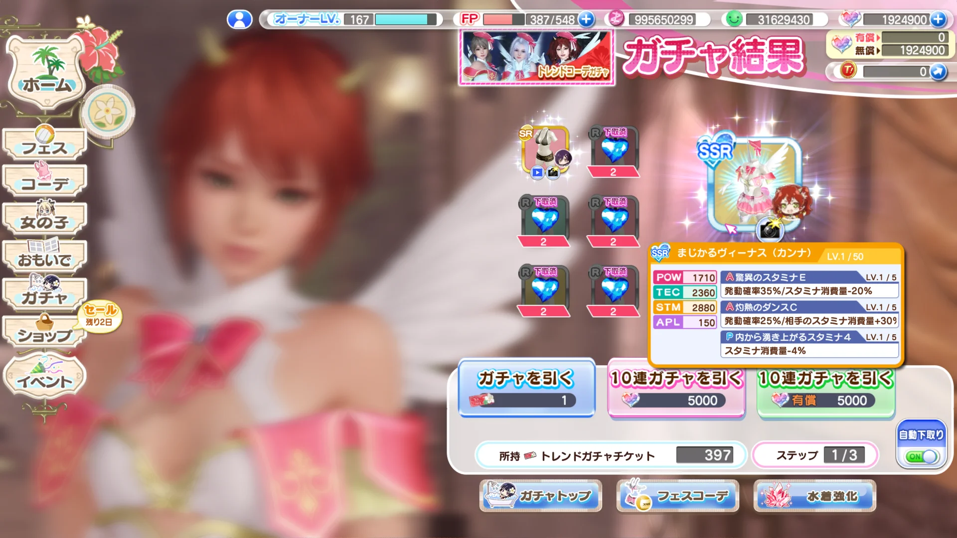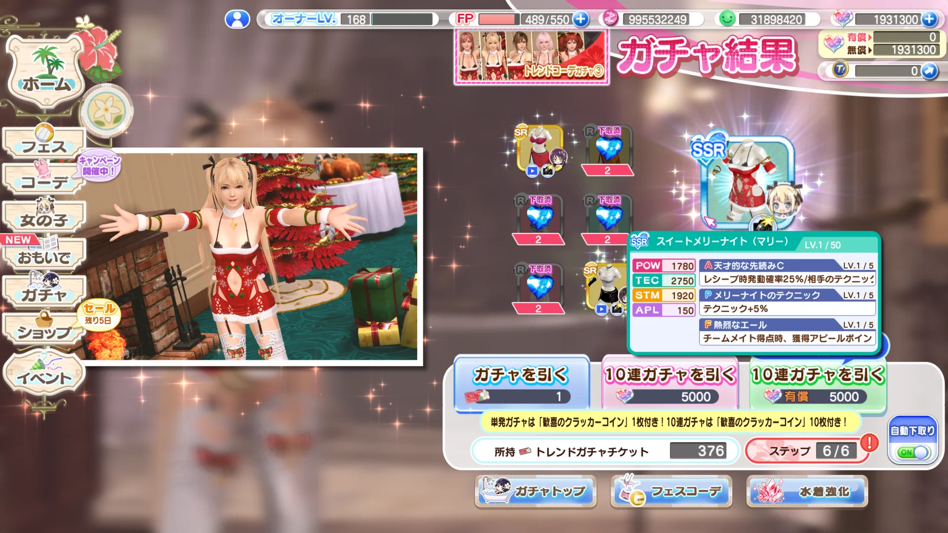 | 6月 | 「DEAD OR ALIVE Xtreme Venus Vacation」で、確定ガチャチケットが溜まっていて困っていた。 まだ2022年のが残っている。来年にはなんとか消費したい。