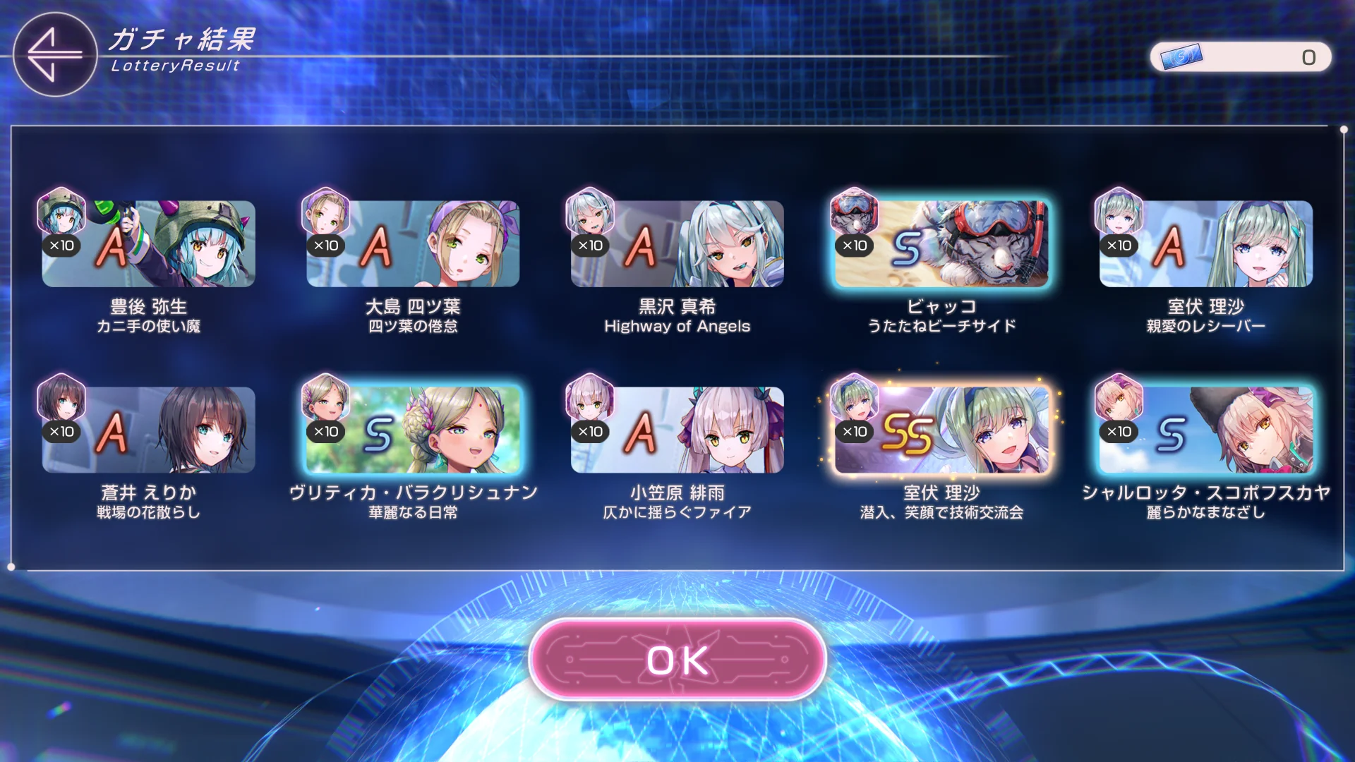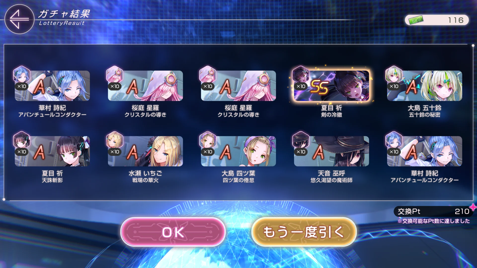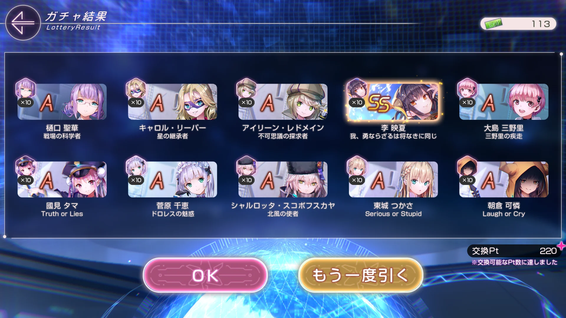 「HEAVEN BURNS RED」で、ハイスコア報酬ガチャが10枚以上溜まりました。