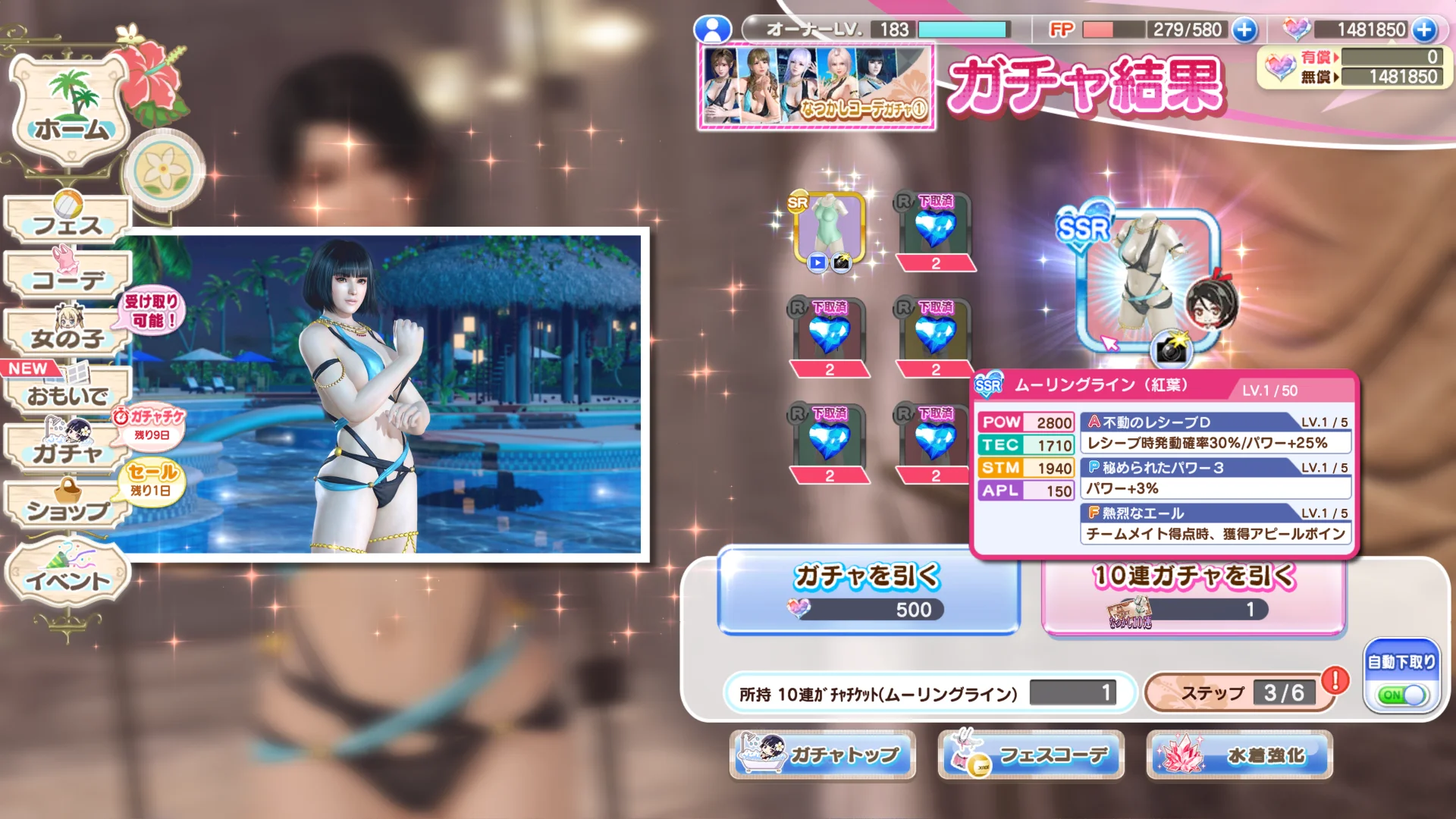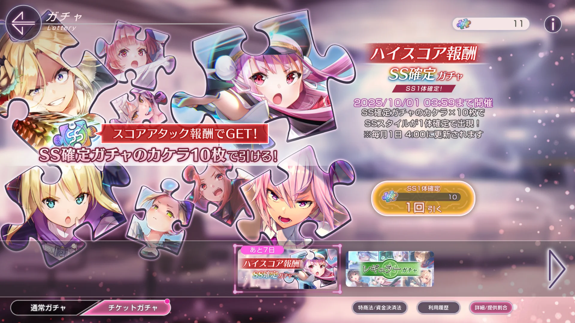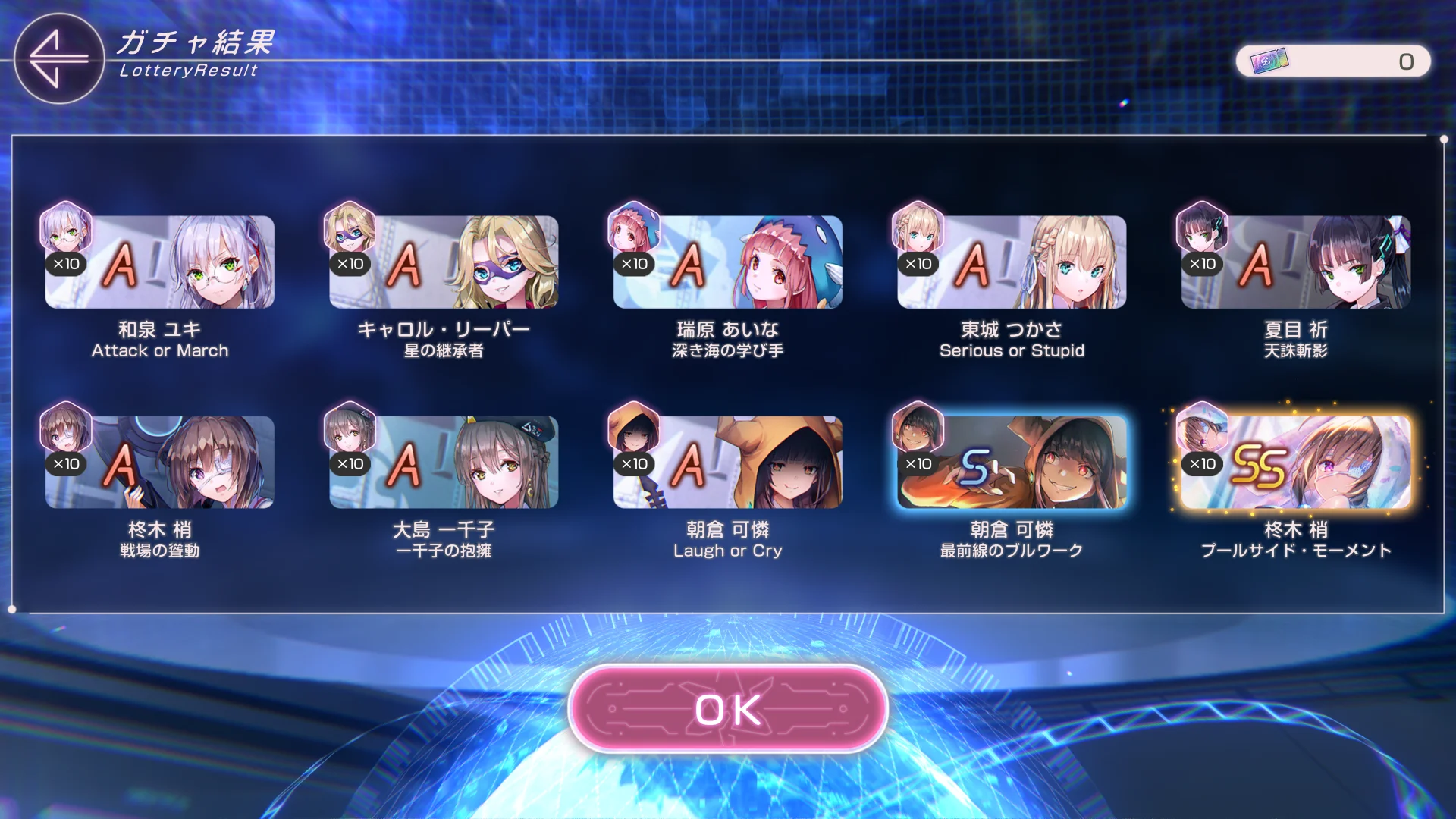 「HEAVEN BURNS RED」で、ハイスコア報酬ガチャが10枚以上溜まりました。