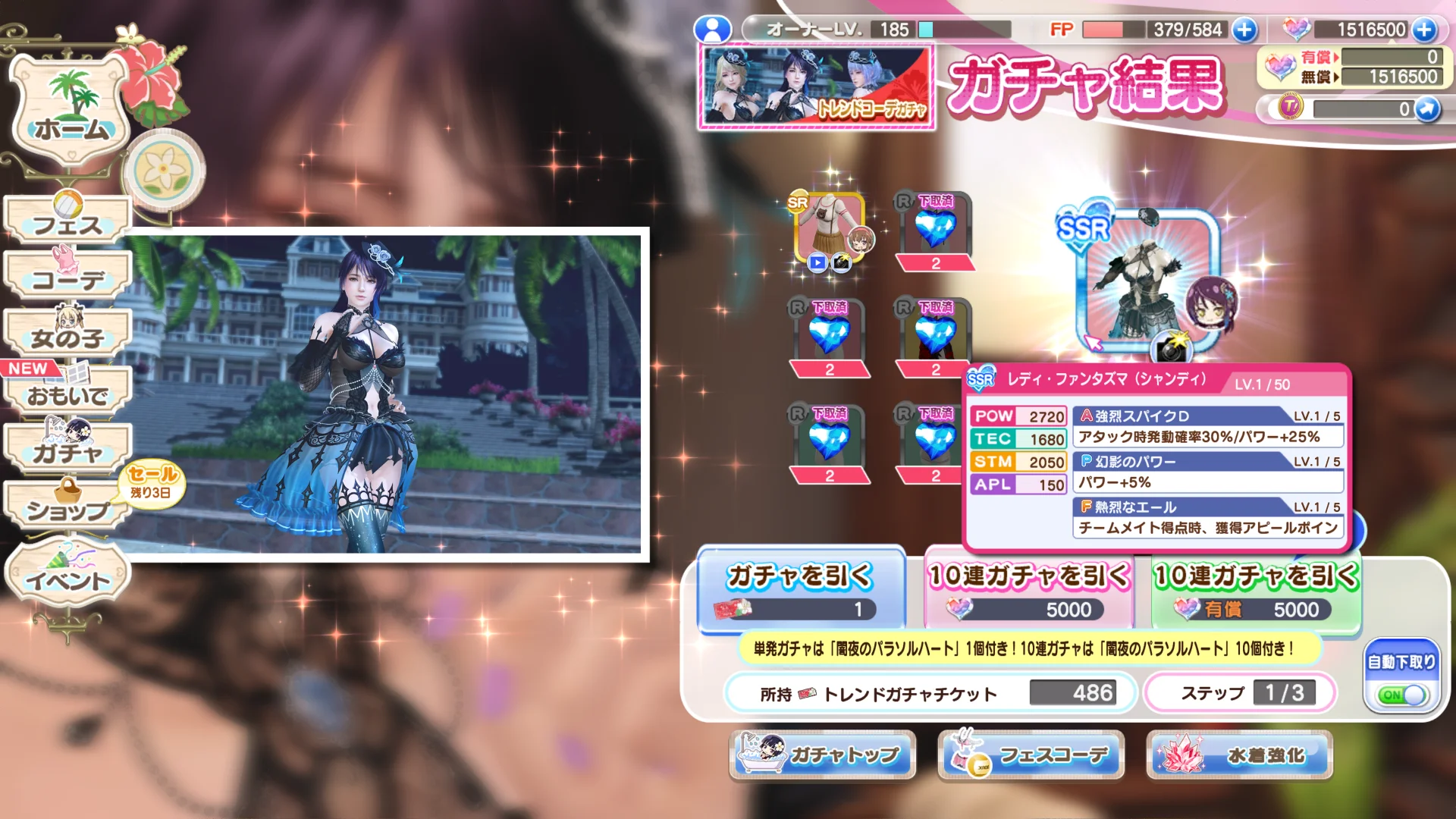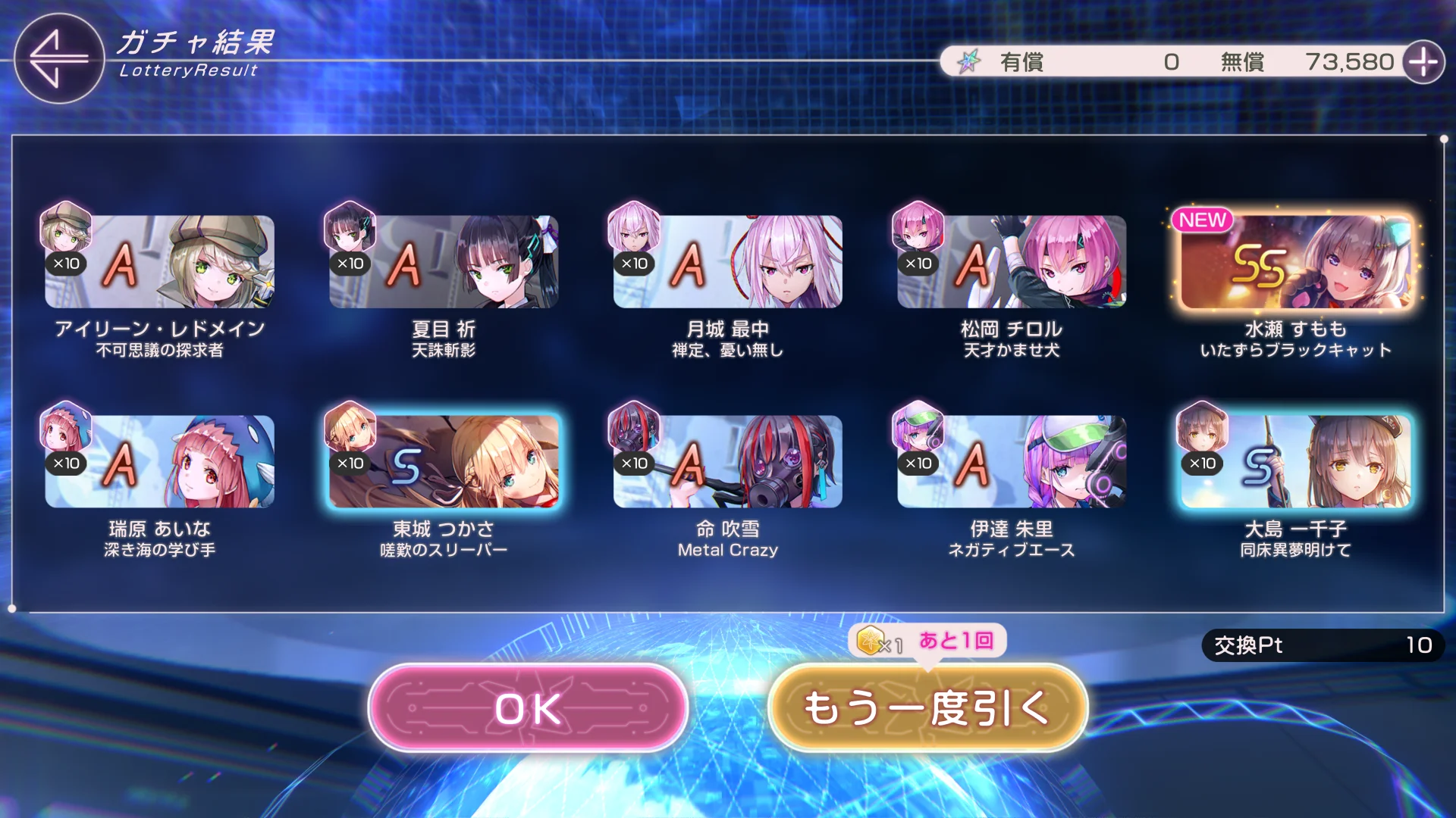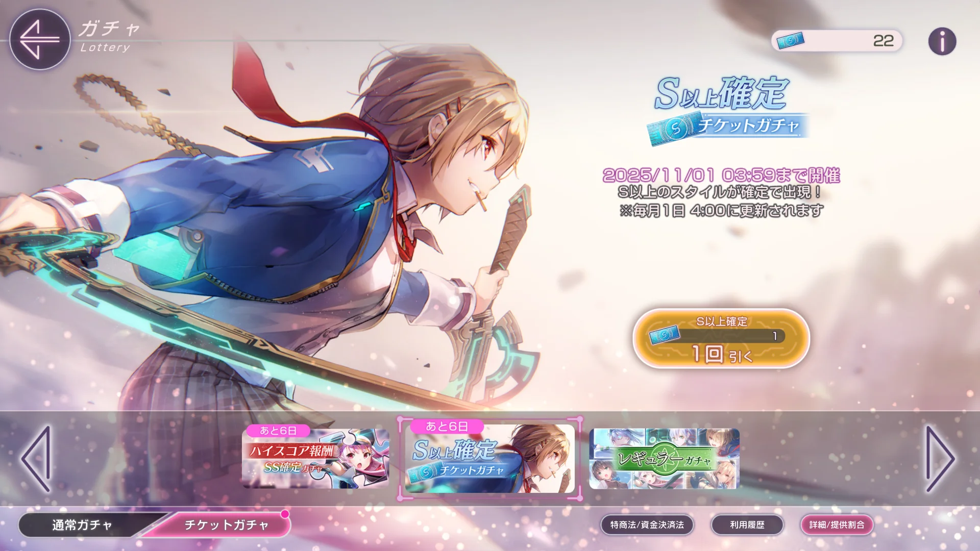 確定ガチャのほうは前イベントのSSスタイルが出ました。