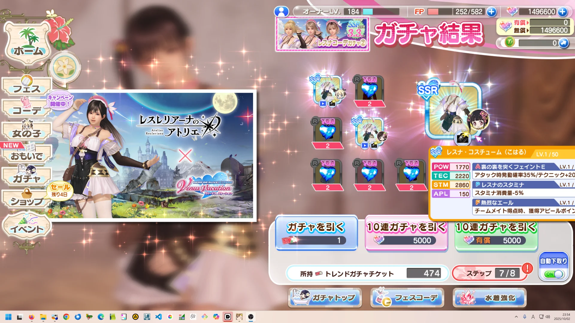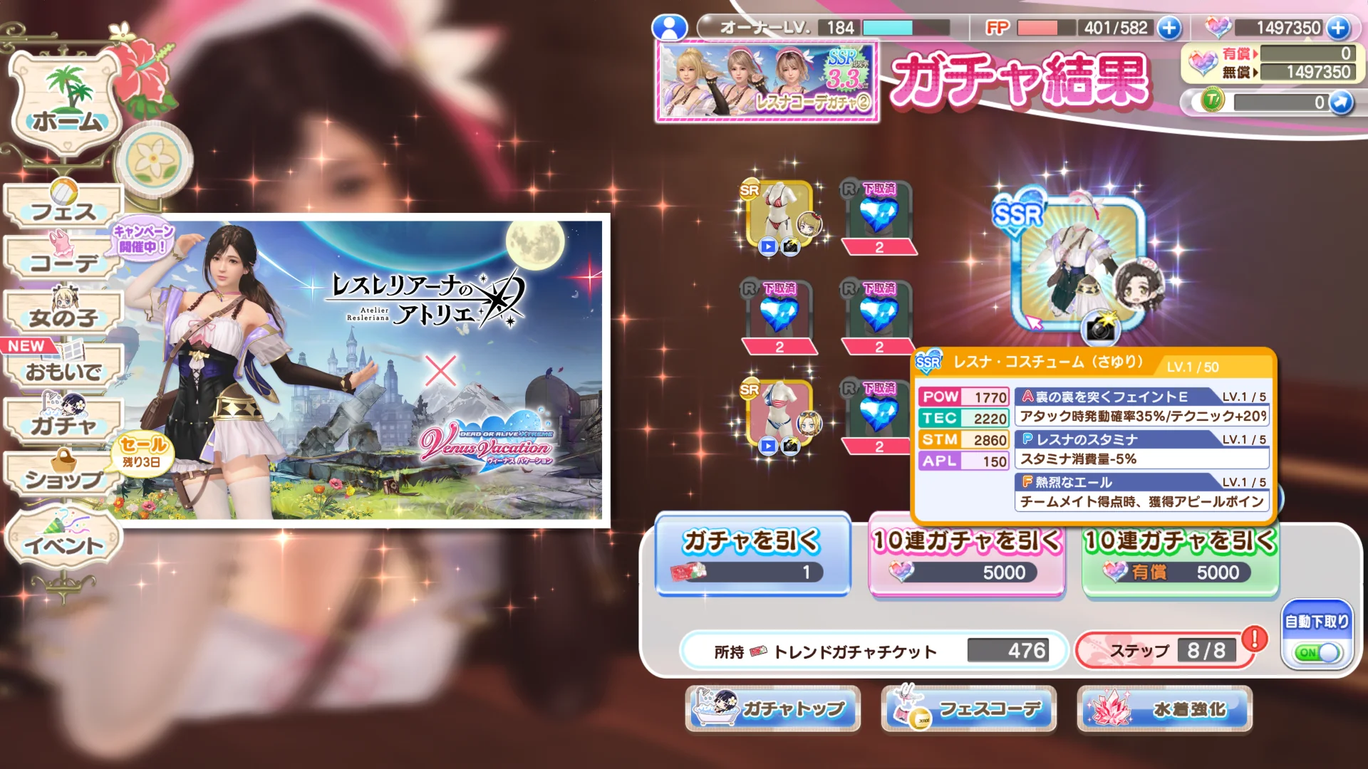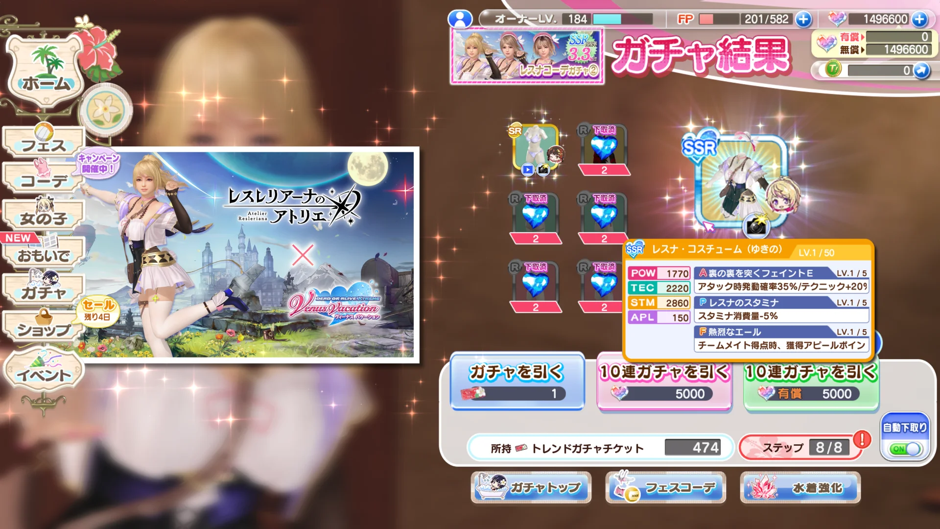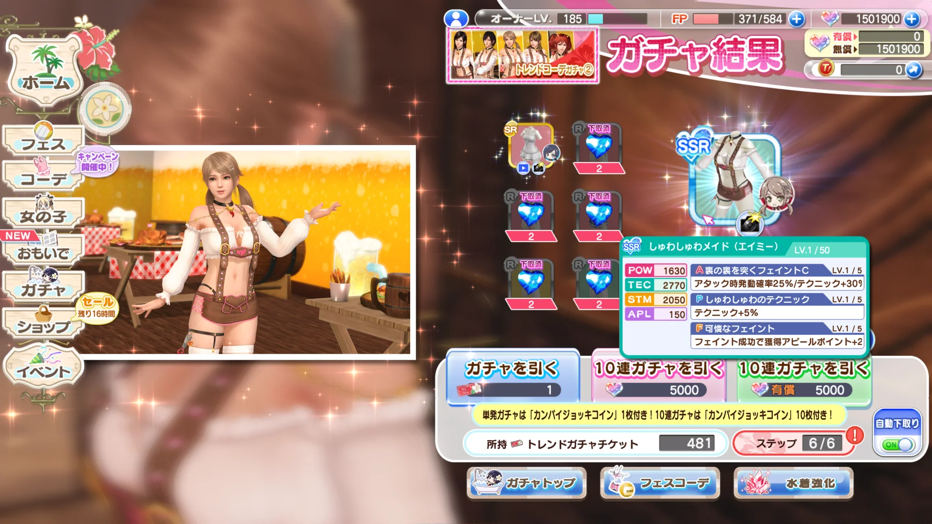 確定ガチャのほうは前イベントのSSスタイルが出ました。