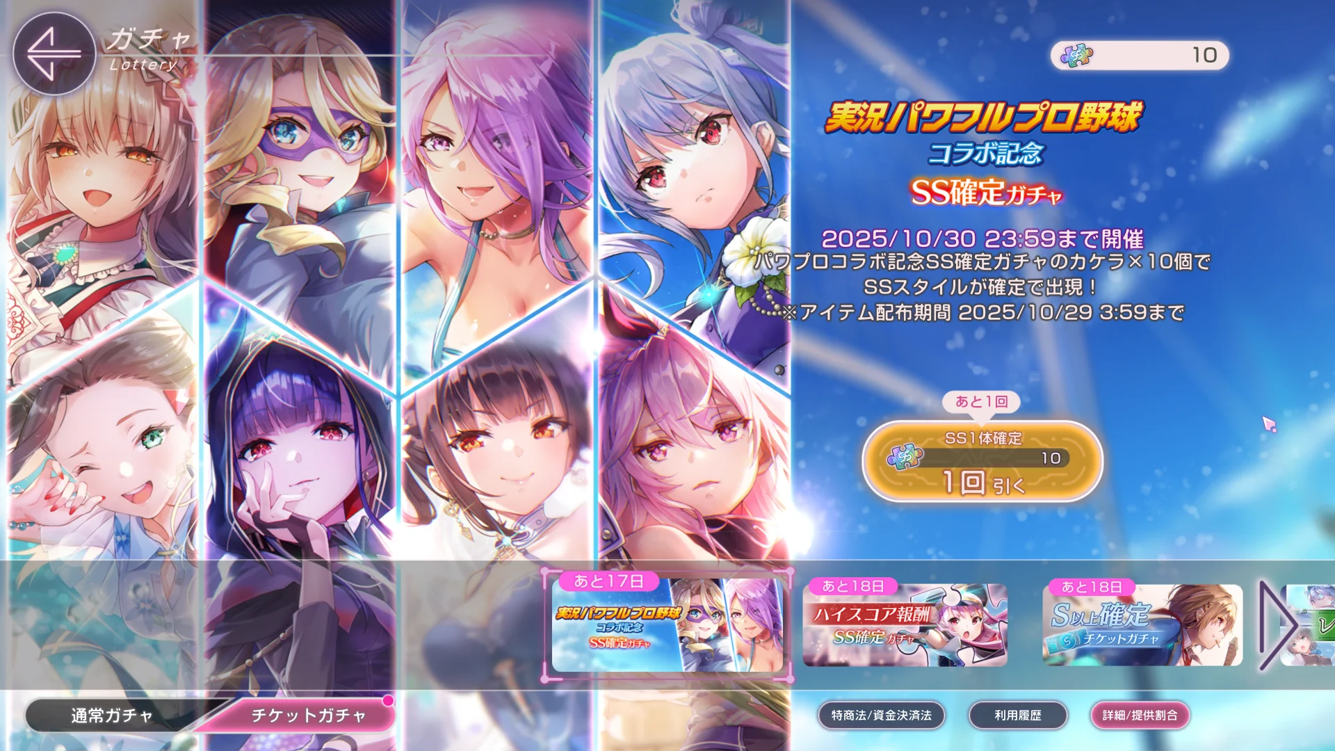 パワプロのコラボ記念のSS確定ガチャチケットが溜まった。