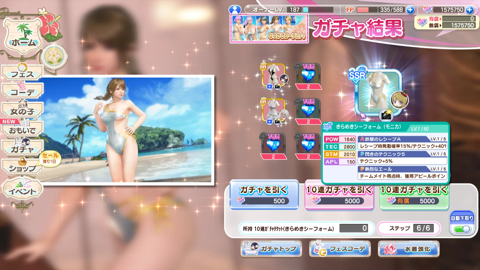 5章後編のラスボスで苦労しなかった編成で試したらあっさり100万超えを達成。ただ、褒賞の最高スコアが240万だからまだ半分程度の残念なスコア。100点満点のテストで50点以上を取って友達に自慢するのと同じ行為でした。