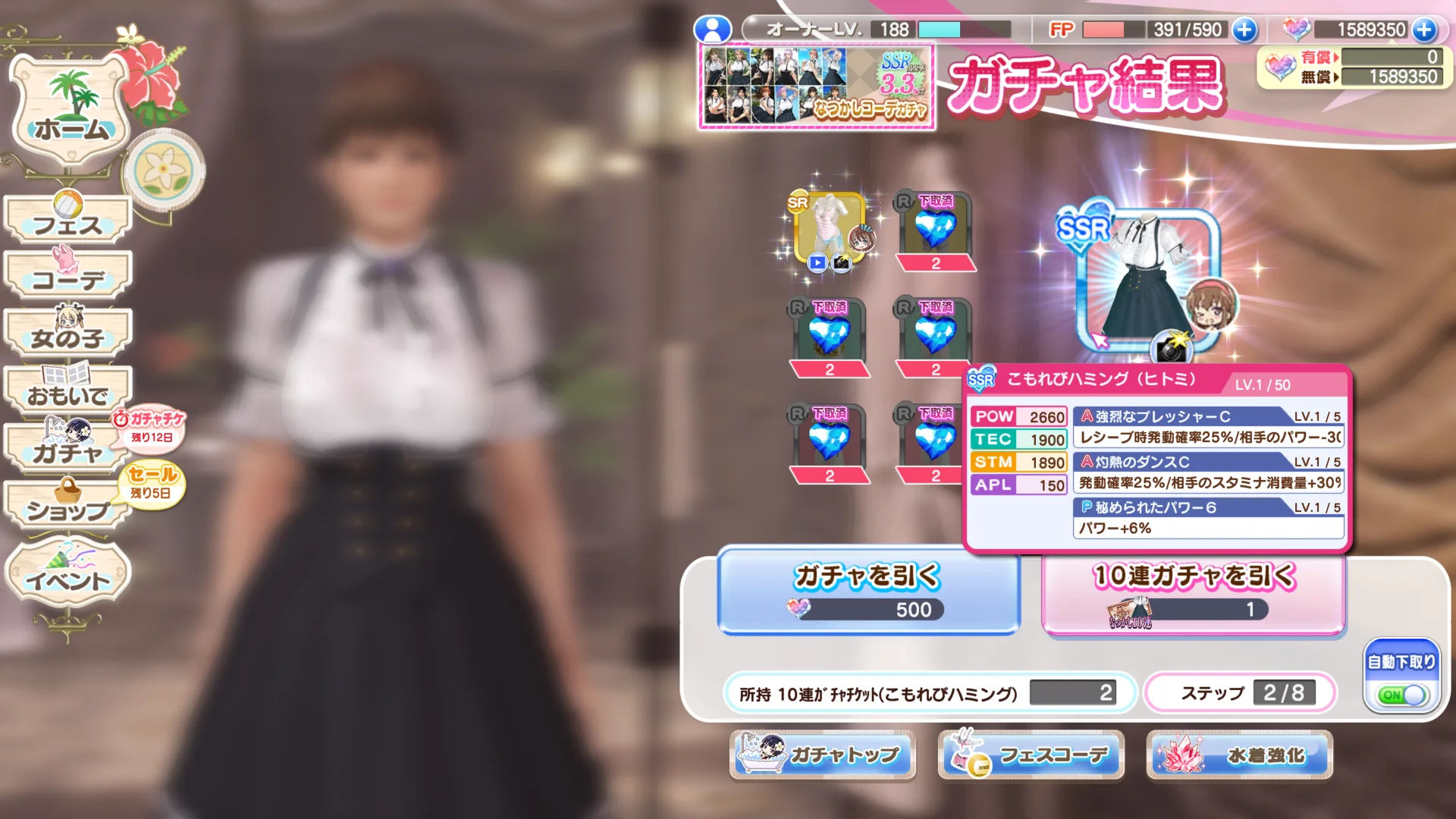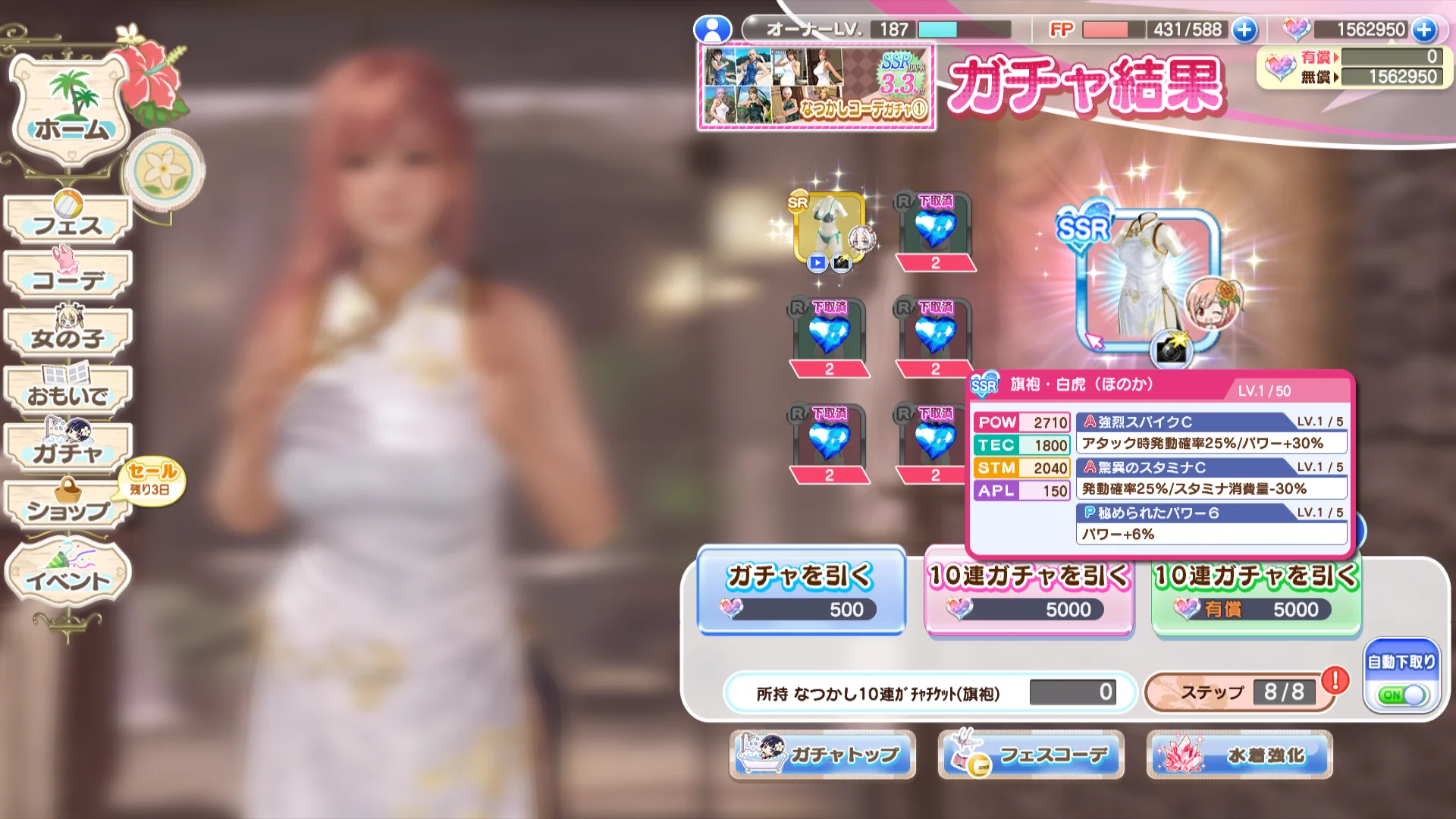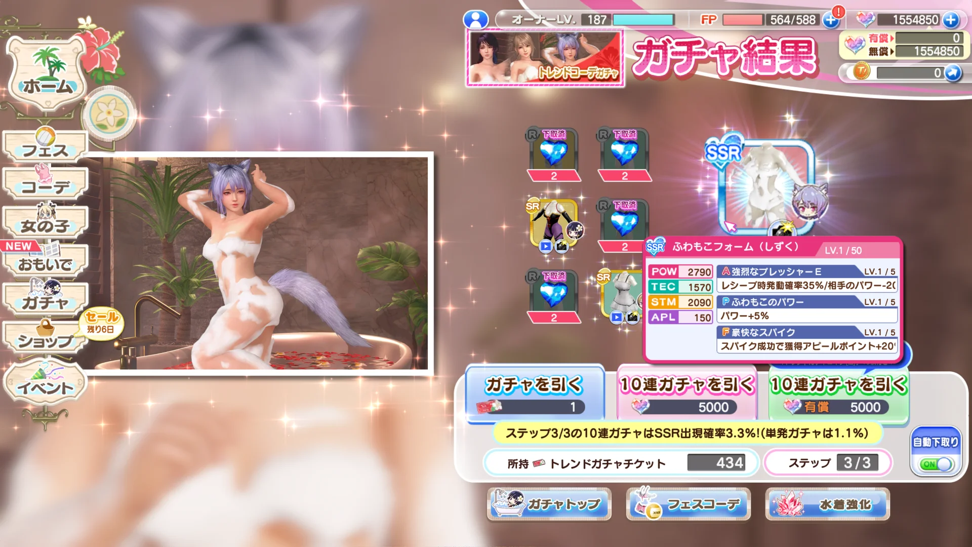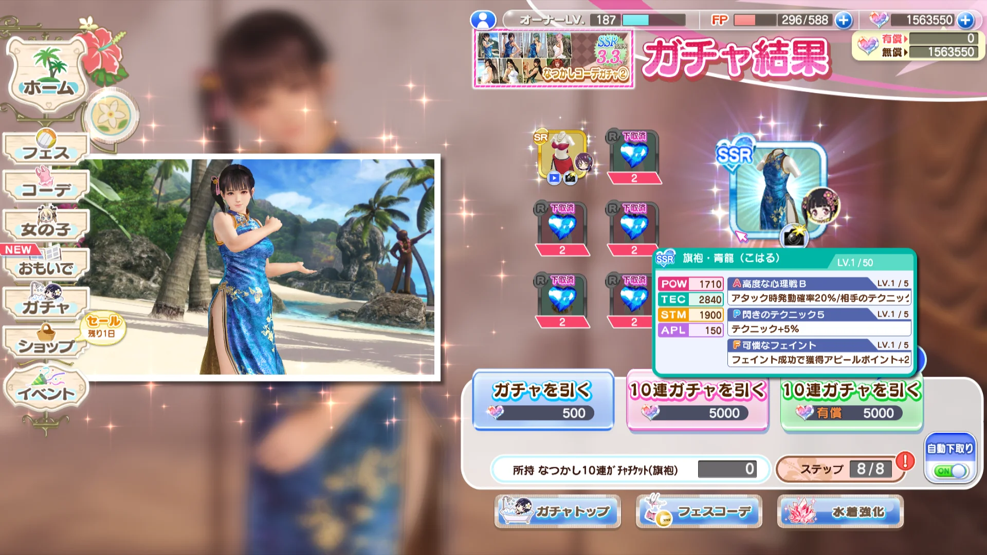 「DEAD OR ALIVE Xtreme Venus Vacation」で6日ぶりになつかしコーデガチャでSSR水着が当たった。