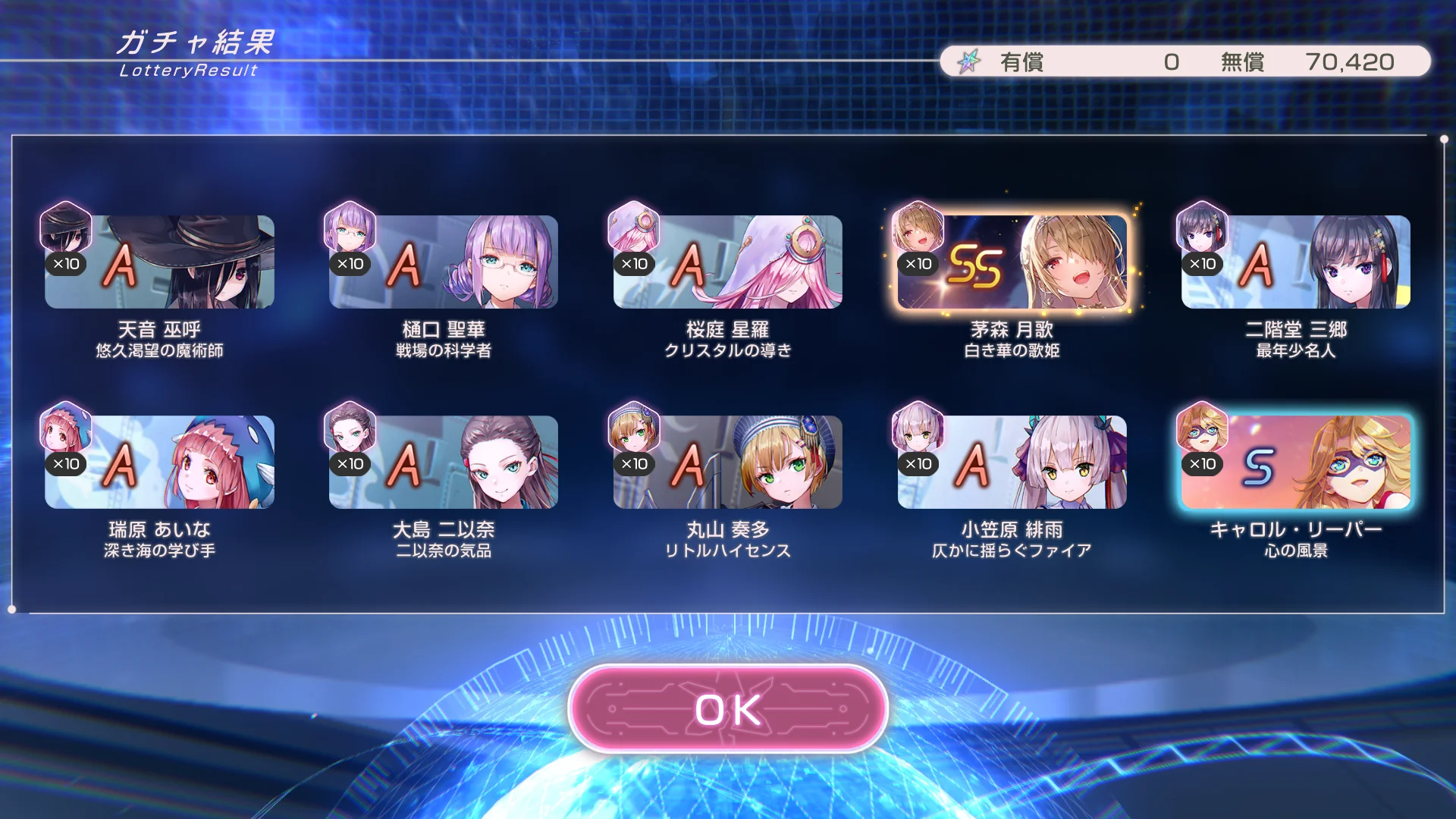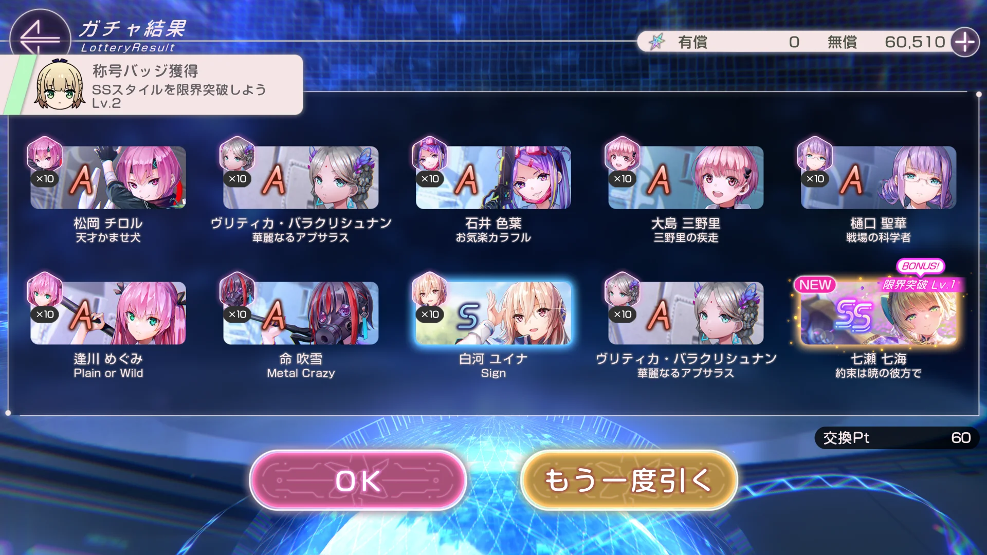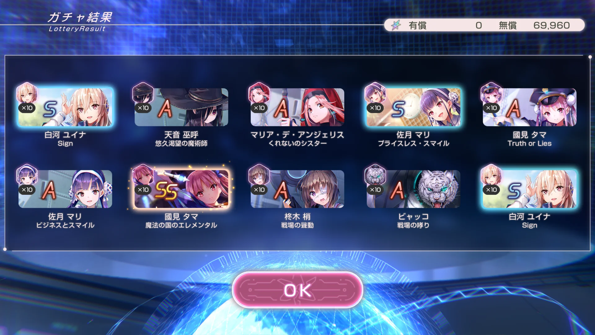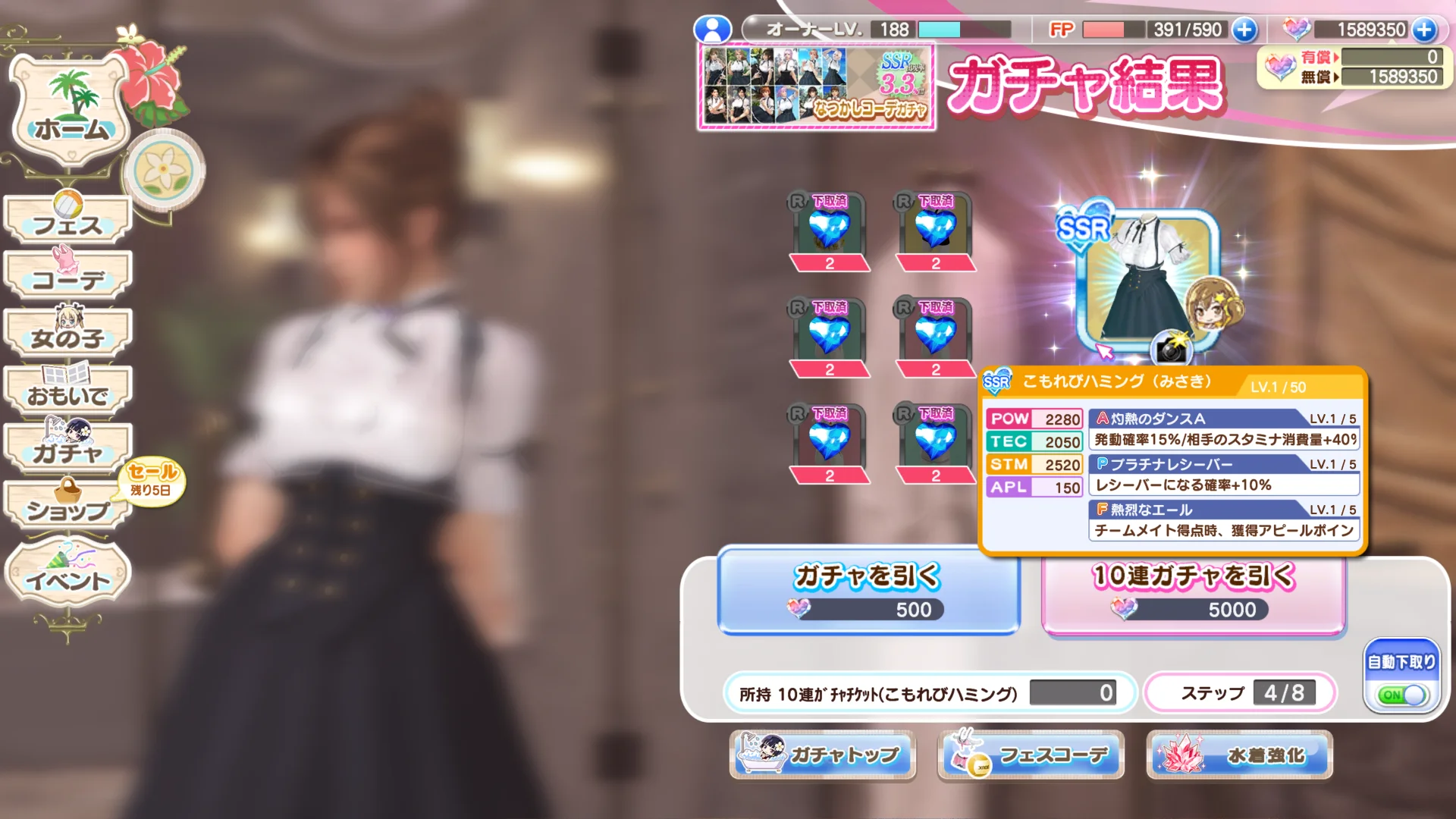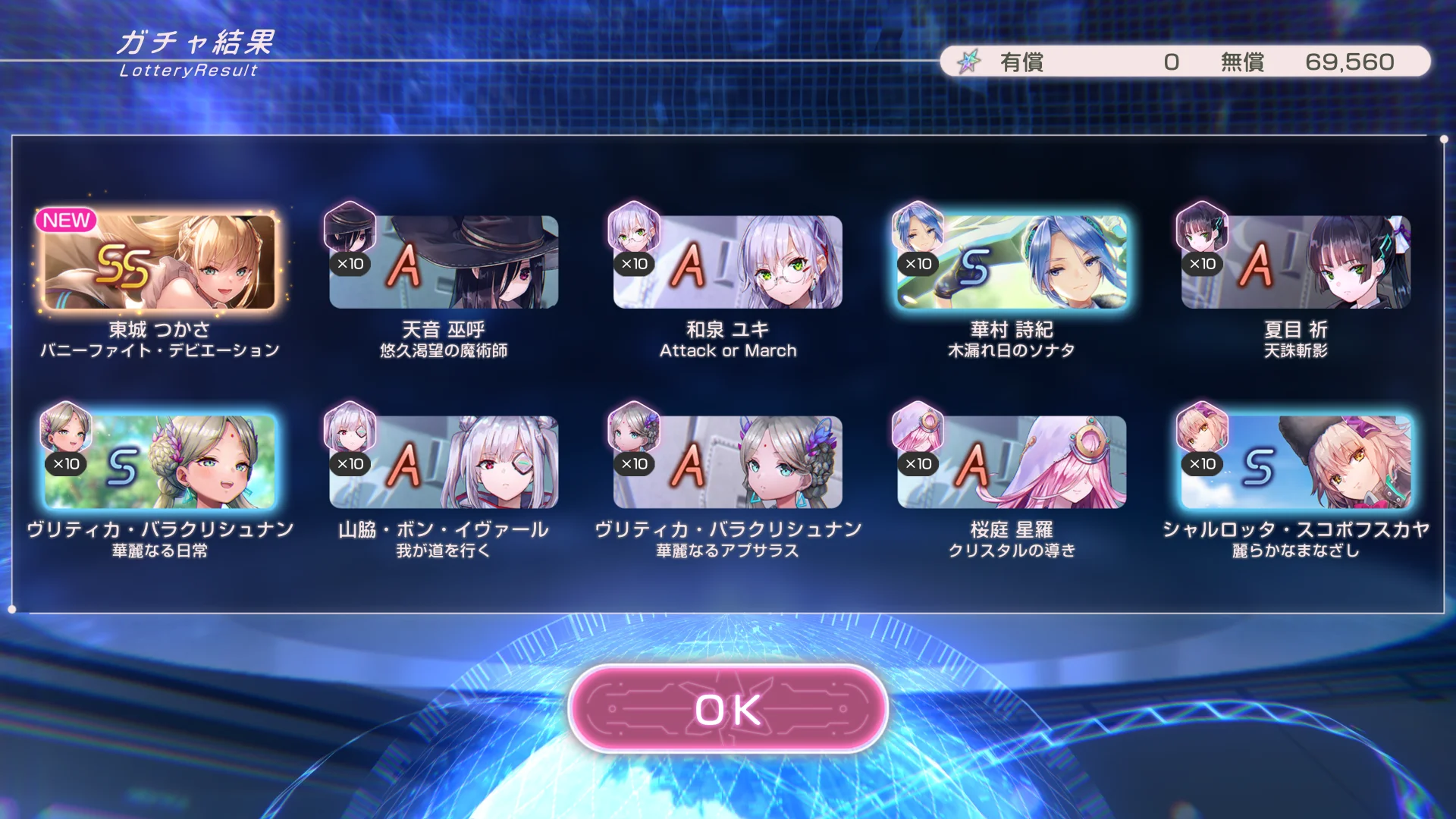 ガチャチケットが3枚溜まっていたので続けて引いていたら3連続で当たりました。